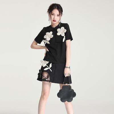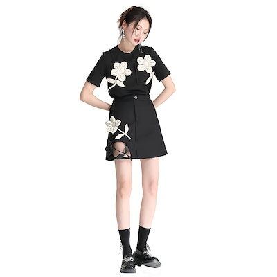 マウンテンパーカー シアーシャツ ブラウス カーディガン【上品】 花飾り Tシャツ シンプル ラウンドネック ゆる ブラウス 【パンツは店で別売りして】 半袖 花柄 シャツ レディース 日焼け止め オ