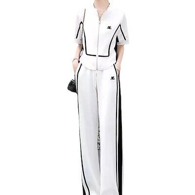 セットアップ スーツ 韓国 夏 涼しく楽ちんセットアップ レディース ルームウェア スウェット上下セット 2024夏の新作半袖トップスワイドパンツ2点セット