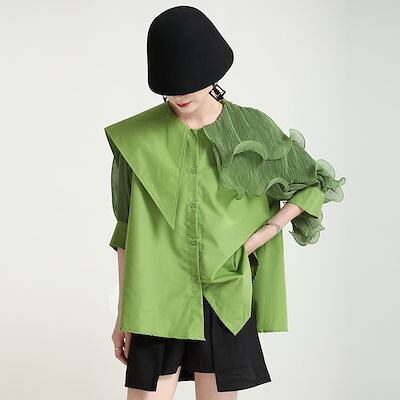使える!シフォンブラウス夏の準備! ニッチなデザイン 半袖 シャツ クラシックでアシンメトリーデザイン ウェストバンド付きLFZ176