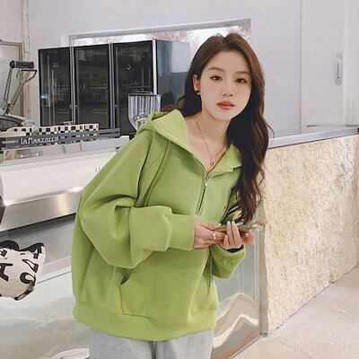 韓国ファッション 長袖tシャツレディースUVカットTシャツ長袖 丸ネックインナー長袖 パーカー 着痩せゆったりスウェット大きいサイズ Tシャツカットソーメガ割