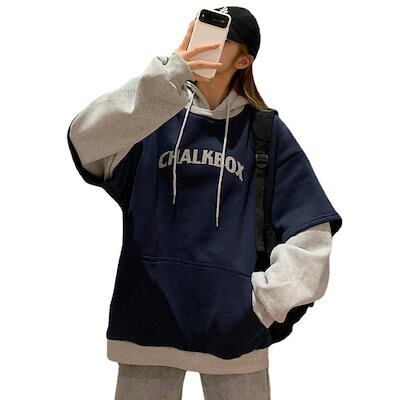 秋服 新作 パーカー スウェット 色切り替え フェイクレイヤード コントラストカラー カーディガン アウター ジャケット ゆったり レディース トップス 通勤 体型カバー
