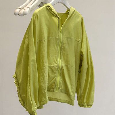 UVカットパーカー レディース シアー パーカー UVパーカー 春 夏 接触冷感 薄手 透け感 袖ボリューム ジップアップ シアー ジャケット uvカット 撥水 速乾 通気 長袖 軽量 羽織 フード