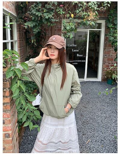 UVパーカー UVカット レディース アウター ライトアウター ショート丈 ジャケット ブルゾン 薄手 きれいめ パーカー ジップアップ オギャドキパーカー 長袖 羽織り ゆったり ボリューム袖 大人
