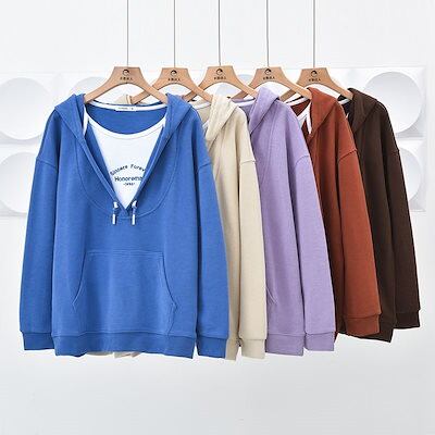 初春新作 パ一力一 定番! 長袖パーカー レディース 韓国ファッション フェイクツーピース 体型カバー 大きいサイズ長袖トップス 百掛け 着痩せ 大きいサイズ肉を隠す パーカー