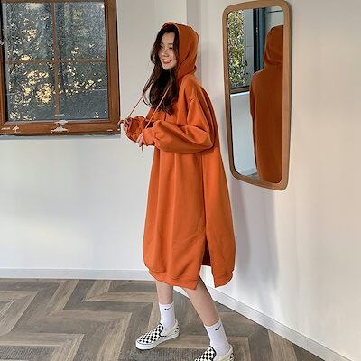 春 パ一力一トレンドはビッグロゴ 秋ロングパーカー レディース スウェットワンピース 韓国ファッション着痩せ百掛け