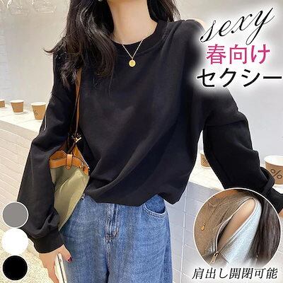 2024年春新作長袖 春 デザイン感 長袖ブラウス スウェットパーカートレーナー レディーストップスTシャツ オフショルダーネック スウェット 肩出しセクシー