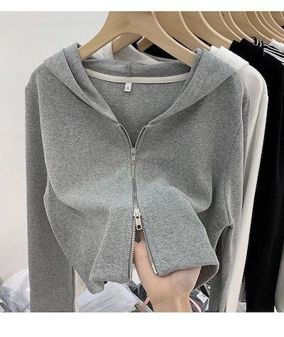 2024年春新作長袖 シャオジ デザインセンス ダブルジッパー カーディガン セーター レディース 薄手 ゆったり フード付き ショートジャケット トップス