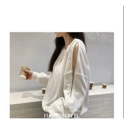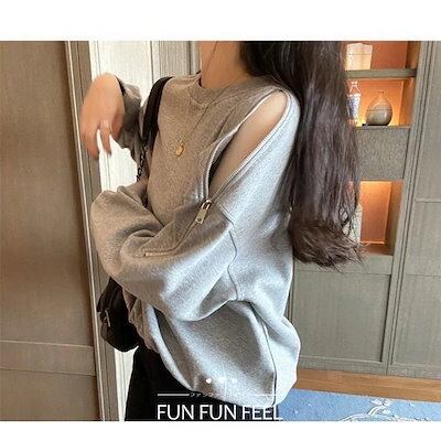 2024年春新作長袖 きれいめスウェットレディース春秋新作40代肩出しブラウス長袖トレーナーゆったりトップス韓国風プルオーバー無地可愛い