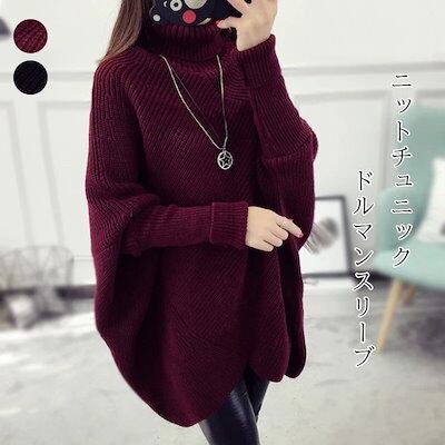 ニット セーター レディース ック 長袖 トップス ロングニット チュニック ゆったり 着痩せ お洒落 ニットワンピース 体型カバー 通勤 L 30代 40代