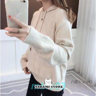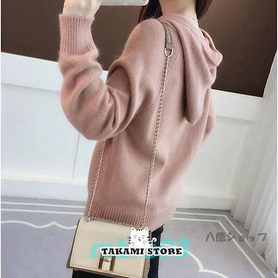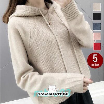 パーカー ニット セーター ニットパーカー ニットセーター 長袖 レディース 無地 フード付き ベーシック 初 服 着痩せ効果