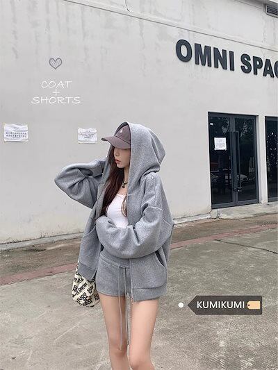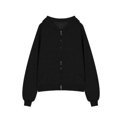 2024 秋冬 韓国 かわいい レディース 無地 フード付き長袖アウターレトロセット黑白フーディーブルサイズ丈トップス春カジュアルスポーツファッション系通学学生袖お出かけアップシルエット袖トラック