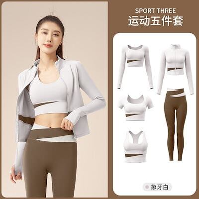 ファッションヨガウェア セットアップ ヨガトップス スポーツウェア 5点セット ヨガウエア ランニングウエア 速乾性 フィットネ レディース 上下セット 運動セット