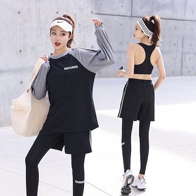 ファッションヨガウェア セットアップ ヨガトップス 【3点セット】 春夏 ランニング Tシャツ ジム ランニング フィットネス スポーツウェア ジョガーパンツ 春夏秋冬 速乾 レディース 上下セット