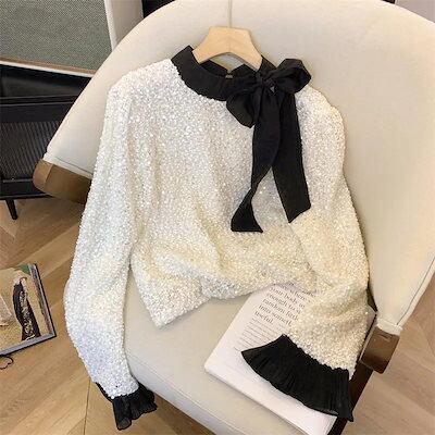 スパンコールブラウス レディース長袖シャツ トップス通勤 韓国ファッション NC392 2CLR