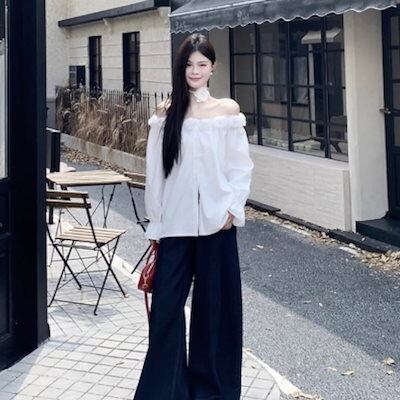 2024秋冬トップス シャツ 長袖 花 ポエットスリーブ ゆったり 秋 白 ホワイト おしゃれ かわいい 韓国系ファッション レディース お出かけ