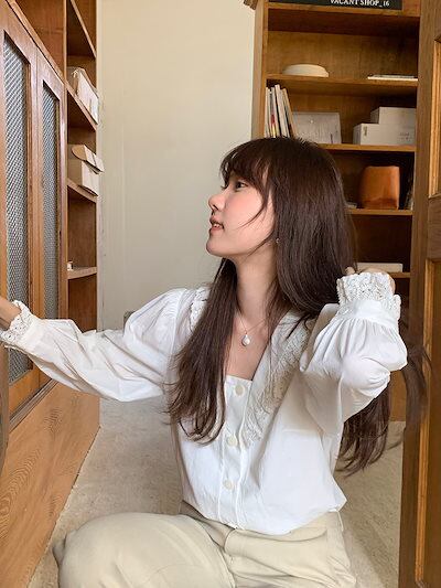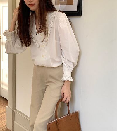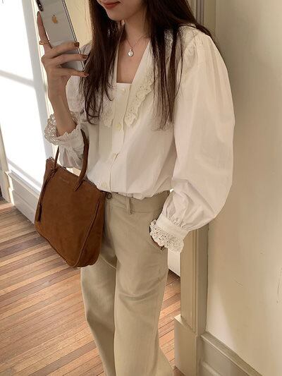 2024秋冬トップス シャツ 長袖 レース スクエアネック ゆったり 秋 白 ホワイト おしゃれ かわいい 韓国ファッション レディース お出かけ