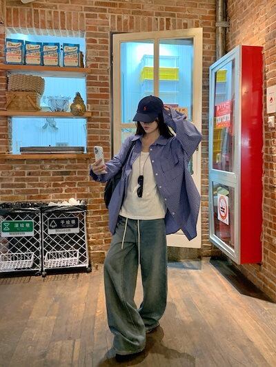 2024秋冬トップス シャツ 長袖 チェック柄 ボタン 襟 スタンダードカラー 秋 青 ブルー おしゃれ かわいい きれいめ 大人っぽい 韓国ファッション レディース お出かけ