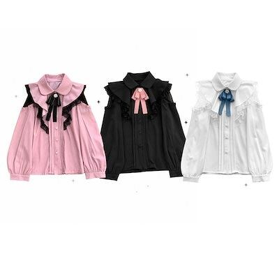 【 迅速な出荷 】2024新入荷シャツ t コスプレ ロリータ ブラウス レディース 甘レース中空オフショルダートップシャツ長袖
