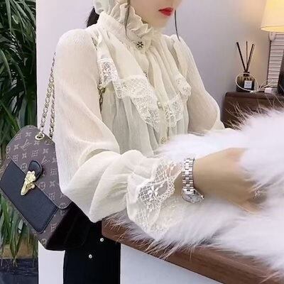 【 迅速な出荷 】スタイルの最新スタイルのシャツ t コスプレ ロリータ ブラウス レディース外国風トップス多用途な高級レース気質の小さなシャツトレンド