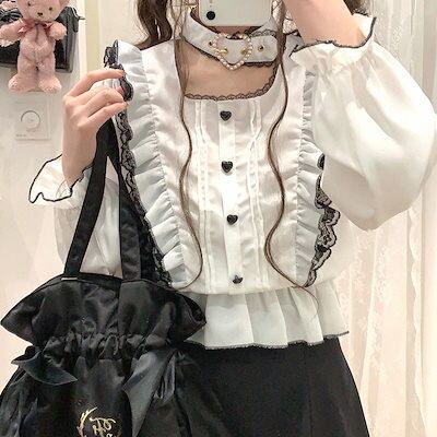 【 迅速な出荷 】地雷スタイルパールラブロリータネックラインシャツ t コスプレ ロリータ ブラウス レディース レースウエストトップシャツ