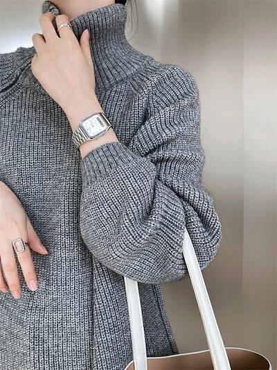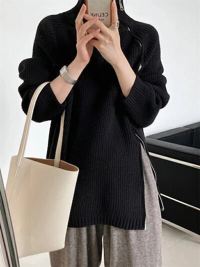 ニットセーター セーター ニット レディース 秋 冬 ジップアップセーター ジップアップ スリット トップス 長袖 ハイネック カットソー ダブルジップ サイドスリット リブニット 通勤 体型カバー