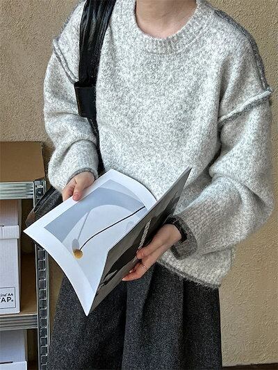 セーター レディース トップス 秋冬 長袖 無地 クルーネック 丸首 プルオーバーセーター プルオーバー ゆったり 体型カバー 大人 女性 カジュアル 通勤OL 通学 おしゃれ シンプル オフィス フ