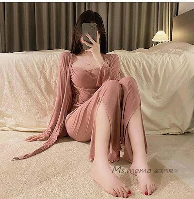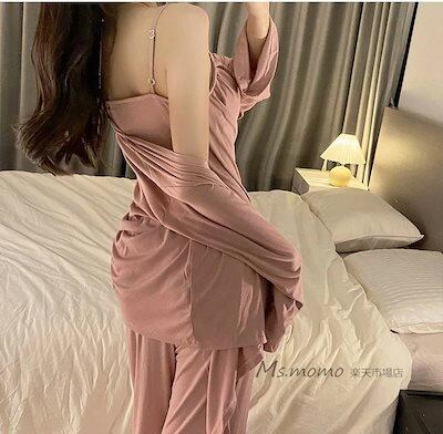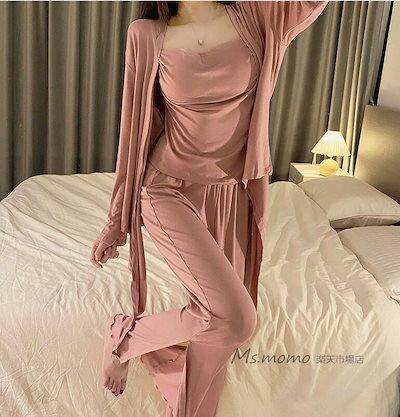 寝巻き 秋冬 ロングパンツ シンプル 3点セット キャミソール 部屋着 レディース オシャレ 可愛いルームウェア ルームウェア 長袖パジャマ 3点パジャマ 女性 前開きアウター