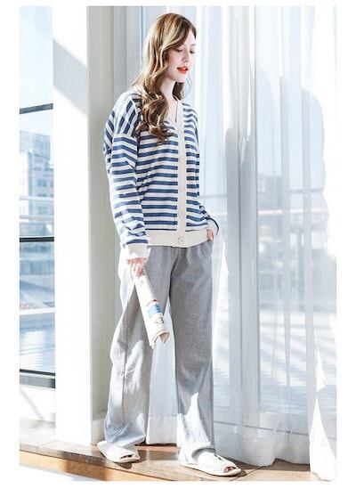 快適 綿100%ルームウェア 大きいサイズ レディース ボーダー柄 秋冬 部屋着 ルームウェア パジャマ 外出 カジュアル 長袖 女性 可愛いパジャマ パジャマ ロングパンツ上下セット