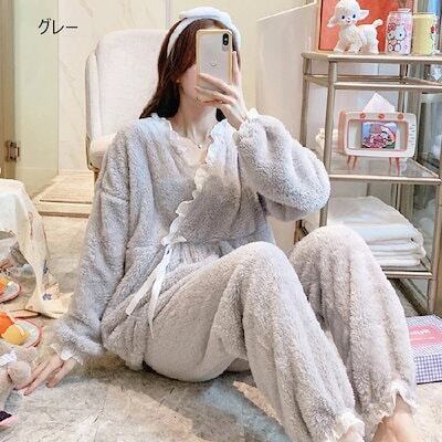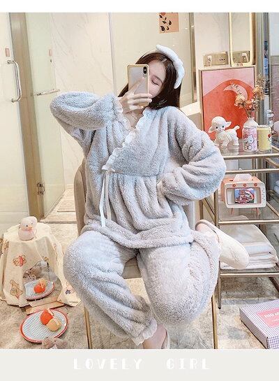 マタニティーパジャマ 厚手パジャマ 暖かいフランネル 秋冬 ルームウェア 母 モコモコパジャマ 前開き レディース 長袖 マタニティーパジャマ 産後 授乳服 可愛い