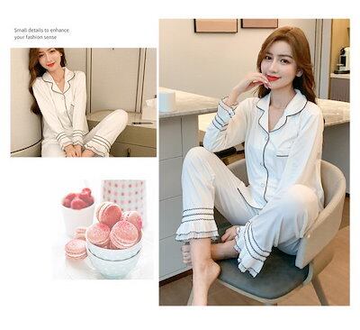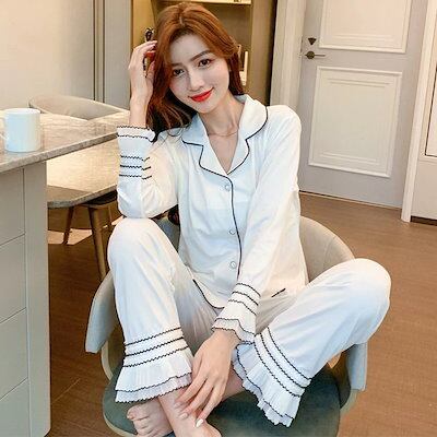 モダール綿上下セット 長袖パジャマ オシャレ 春秋冬 パジャマ 前開きフレア パジャマ 韓国風 部屋着 レディース 可愛い 寝巻き ルームウェア ルームウェア