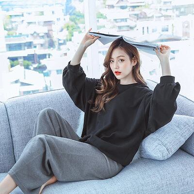 綿100% 長袖パジャマ 寝巻き レディース ゆったり 大きいサイズ ルームウェア上下セット可愛いパジャマ ボーダー柄 部屋着 秋冬 ロングワイドズボン 韓国風 パジャマ