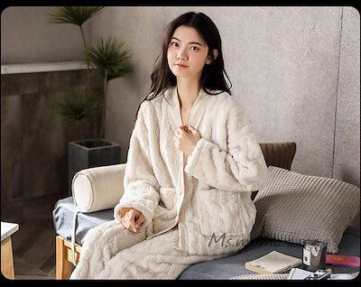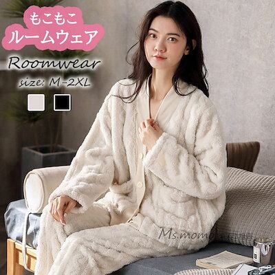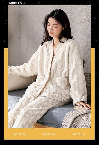 モコモコルームウェア 可愛い パジャマ 部屋着 ゆったり韓国風 暖かい レディース フランネルルームウェア 前開き パジャマ オシャレ 長袖 冬 上下セット 厚手