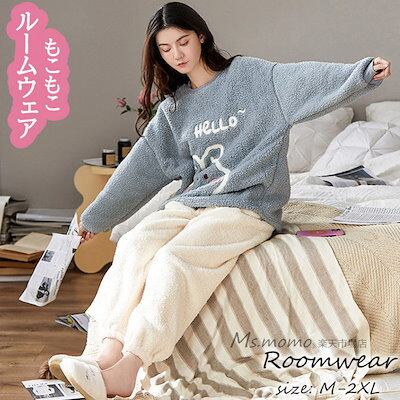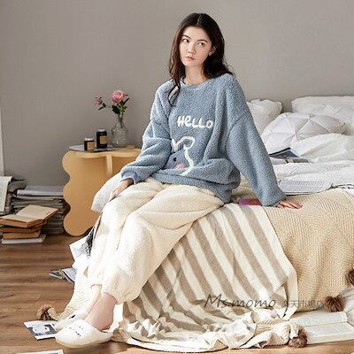 ゆったり韓国風 冬 部屋着 レディース パジャマ 暖かい 長袖 上下セット 厚手 オシャレ 可愛い兎 パジャマ フランネルルームウェア モコモコルームウェア