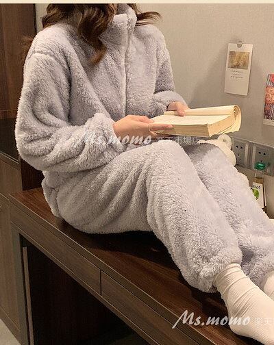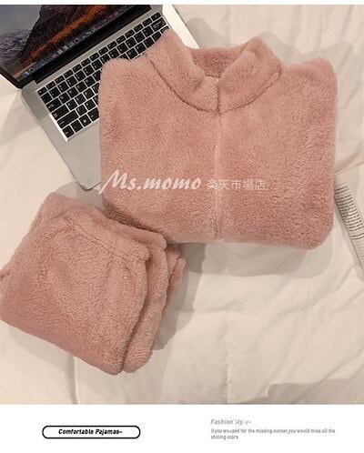 オシャレ 冬 前開き レディース 可愛い無地 モコモコルームウェア フランネルルームウェア 長袖パジャマ 暖かい上下セット 部屋着 パジャマ 厚手 ゆったり韓国風