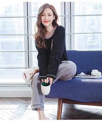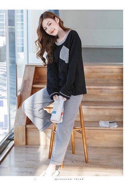 カジュアル 綿100%ルームウェア 秋冬 外出 女性 レディース 配色 パジャマ 大きいサイズ 韓国風 長袖 パジャマ 部屋着 ロングパンツ上下セット 可愛いパジャマ ルームウェア 快適