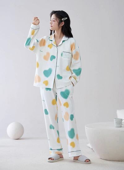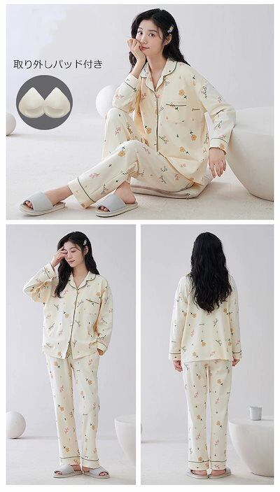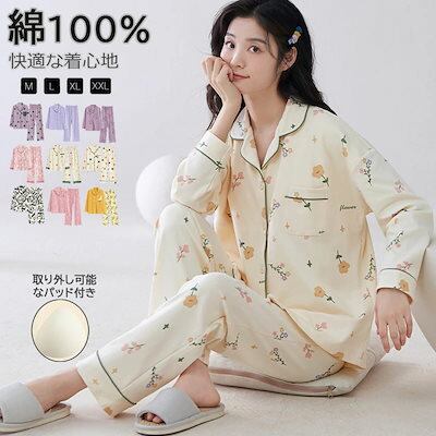 M レディース パジャマ ポケット付き 3L 春夏秋冬 パッド付き 部屋着 綿100% 大きいサイズ 40代 前開き L 2L 吸汗 あったか 吸湿 総ゴム 取り外し可能 50代 長袖 上下セット 柔