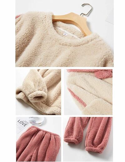 長袖 フランネル プルオーバー XXL 部屋着 韓国風 厚手 M 20代30代40代50代プレゼント 秋冬 セットアップ モコモコ パジャマ XL 寝巻き レディース 上下セット 可愛い 暖かい ルー