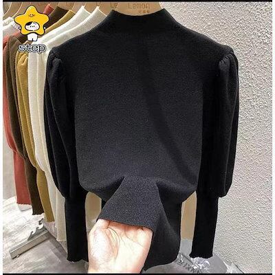ニット レディース パフスリーブ 長袖 リブニット プチハイネック バルーン袖 無地 ス ボリューム袖 コーデ 秋 冬 春おすすめ商品