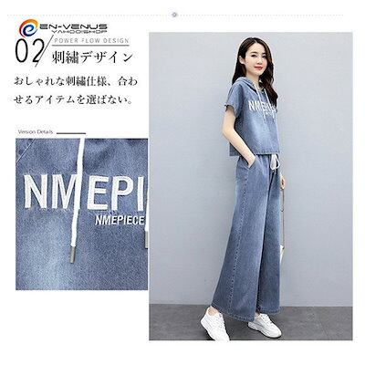 セットアップ レディース 上下セット 春夏 上下セット デニム パーカー ガウチョパンツ 着痩せ おしゃれ 通勤 通学 夏用 大きいサイズ 送料無料