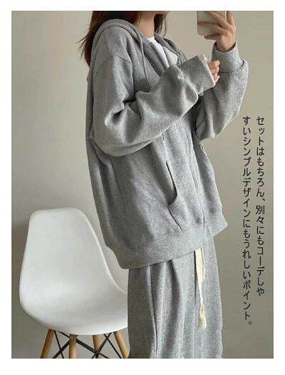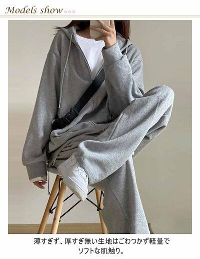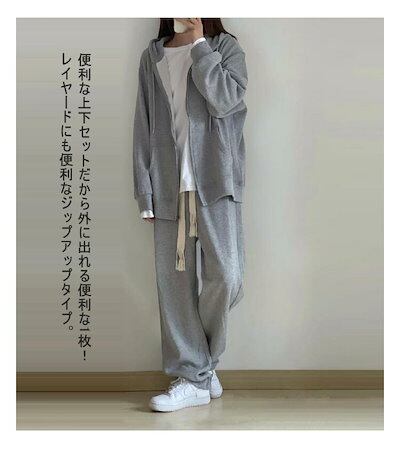 ウェットパーカー セットアップ レディース ジップパーカー 長袖 フード付き 上下セット ロングパンツ カジュアル おしゃれ ゆったり 体型カバー 春秋冬 ジップアップパーカー 可愛い 部屋着 ストレ