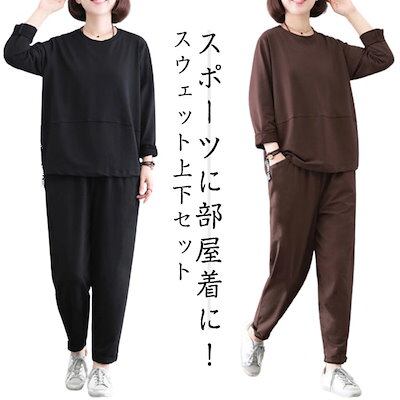 スウェット セットアップ 上下 レディース 部屋着 上下 セット トレーナー テーパードパンツ 長袖 トップス パンツ ゆったり ジャージ 無地 大きいサイズ ルームウェア パジャマ 部屋着 スポーツ
