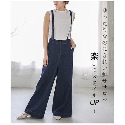デニム サロペット レディース ワイドパンツ オーバーオール おしゃれ ゆったり ワイド カジュアル 体型カバー オールインワン 着痩せ 上品
