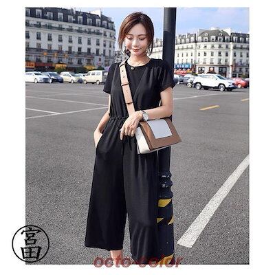 サロペット レディース 40代 韓国風 オールインワン ワイドパンツ ロングパンツ ガウチョパンツ オーバーオール 落ち感 ゆったり 着痩せ ボトムス 20代30代