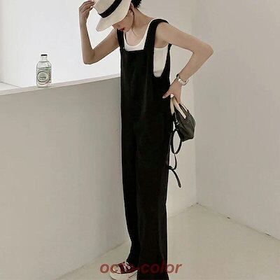 サロペット パンツ オールインワン レディース ワイドパンツ オーバーオール サロペットパンツ きれいめ ゆったり おしゃれ スリット ボトムス ノースリーブ