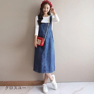 サロペット レディース デニム ワンピース ロング丈 スリット オールインワン キャミワンピ オーバーオール デニムスカート 体型カバー ポケット