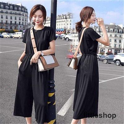 オールインワンセット キャミサロペット レディース Tシャツ付き オーバーオール 体形カバー 上下セット マタニティ 大きいサイズ 薄手 春夏