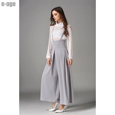 サロペット オールインワン オーバーオール レディース ワイドパンツ ロング丈 ゆったり シンプル 無地 かわいい 美脚 ストレッチ プリーツ