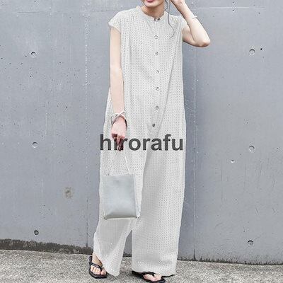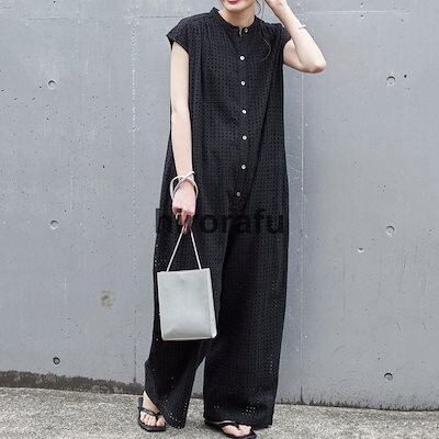 オールイン レディース 透かし編み つなぎ パンツ ネゾン オーバーオール パンツ ワイドパンツ ロングパンツ ボ 体型カバー ゆったり 春夏
