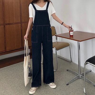 2023韓国夏ワンピース サロペットサロペットパンツ/レディース/オールインワン/オーバーオール体型カバーチュニックワイドパンツスウェット