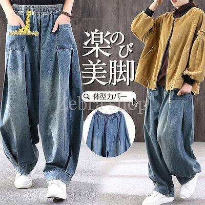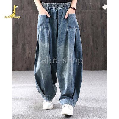 サルエルパンツ レディース サルエル デニム テーパード アラジンパンツ ウエストゴム ポケット ユニセックス 大きいサイズ ゆったり 30代 40代 50代